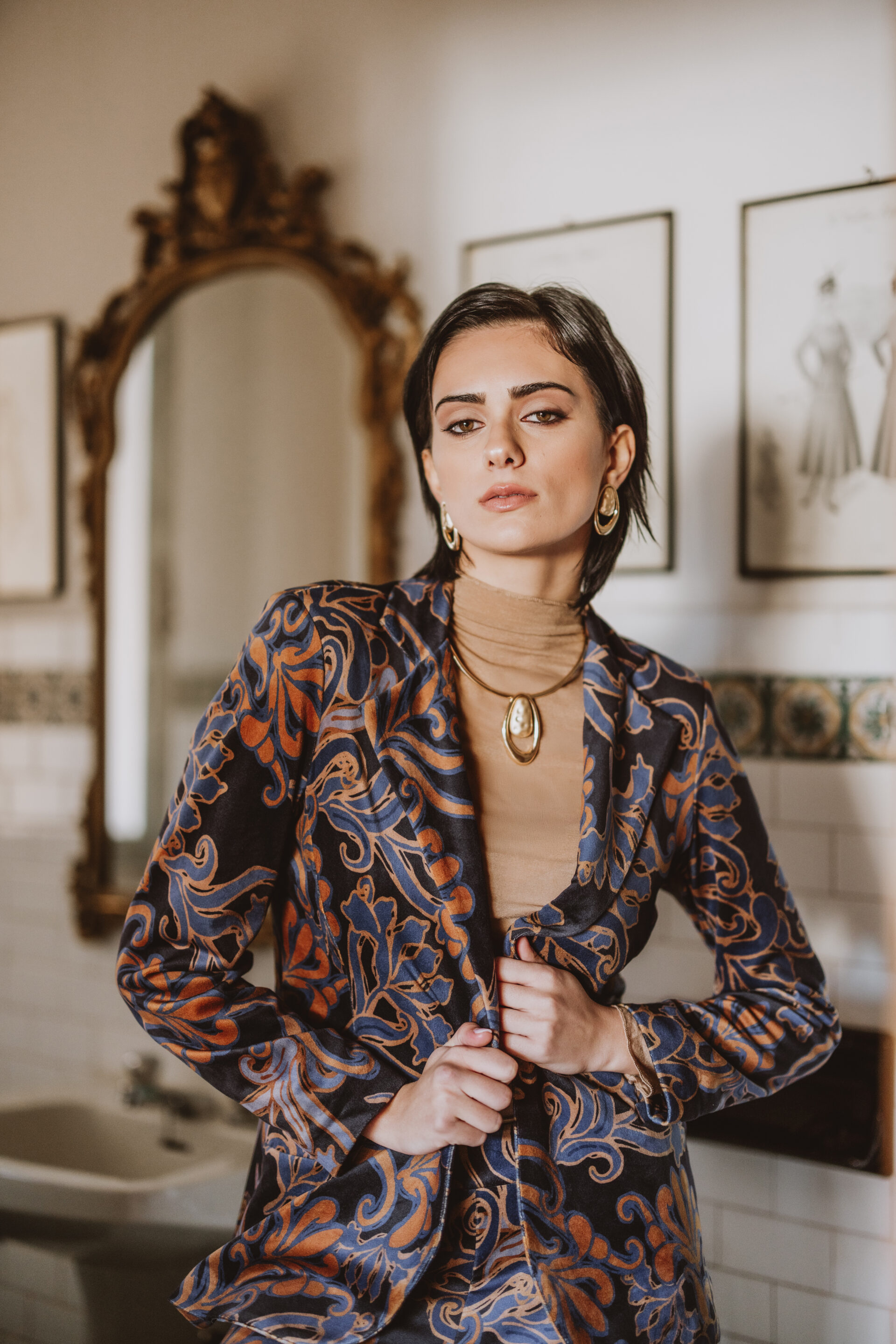 Velluto, tartan e denim si intrecciano in un equilibrio perfetto tra comfort e raffinatezza, in un gioco di texture che esalta l’essenzialità di un’eleganza semplice ma mai scontata.